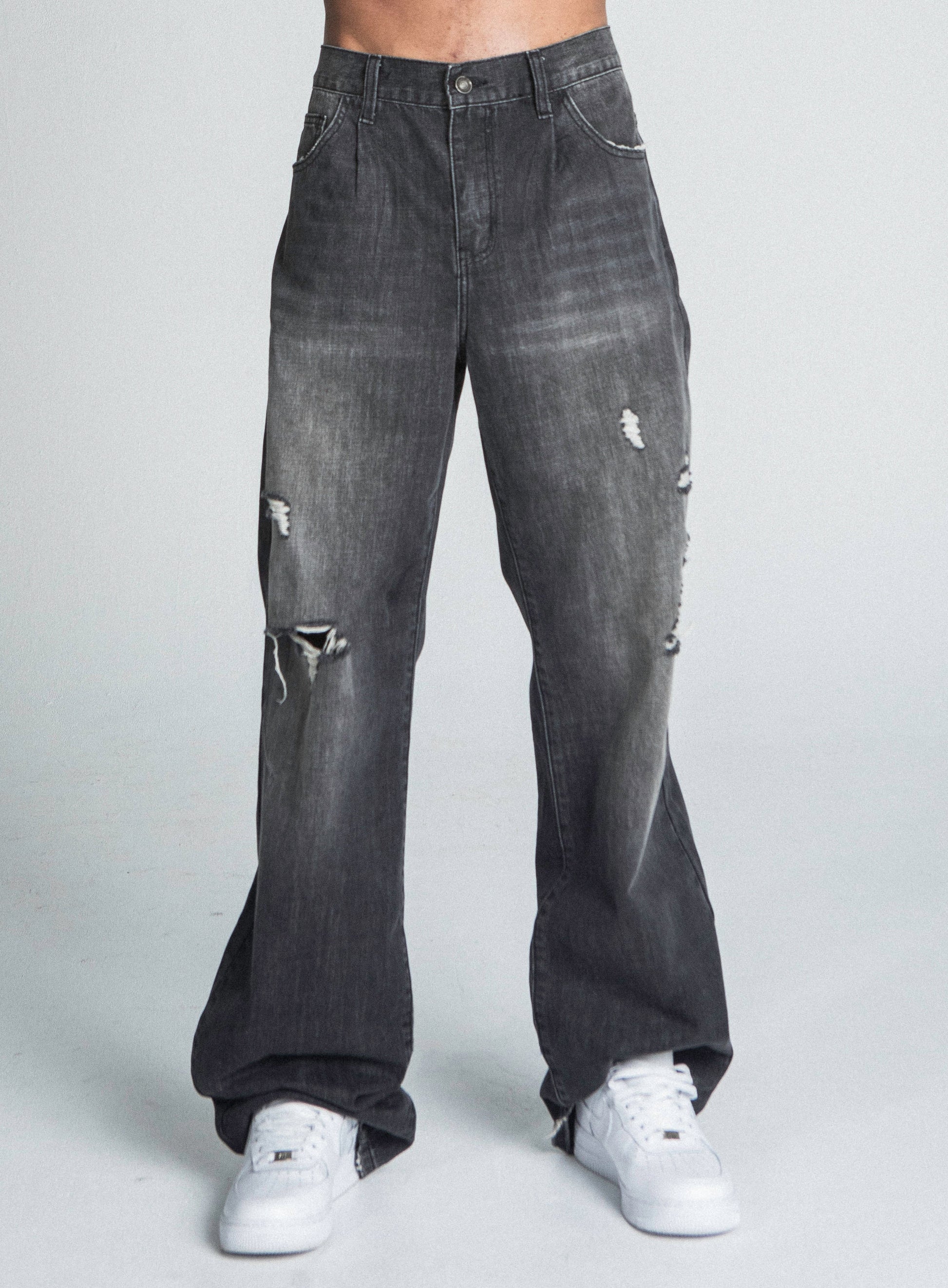 AJ09B-2 VAQUEROS ANCHOS NEGROS DESGASTADOS